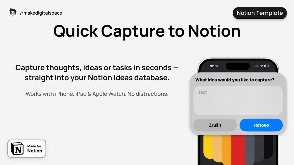 This template is lightweight, beautiful, and easy to use — perfect for building the habit of idea capture without clutter or friction. Use it daily and watch your best thoughts turn into your next project, product, or post.
